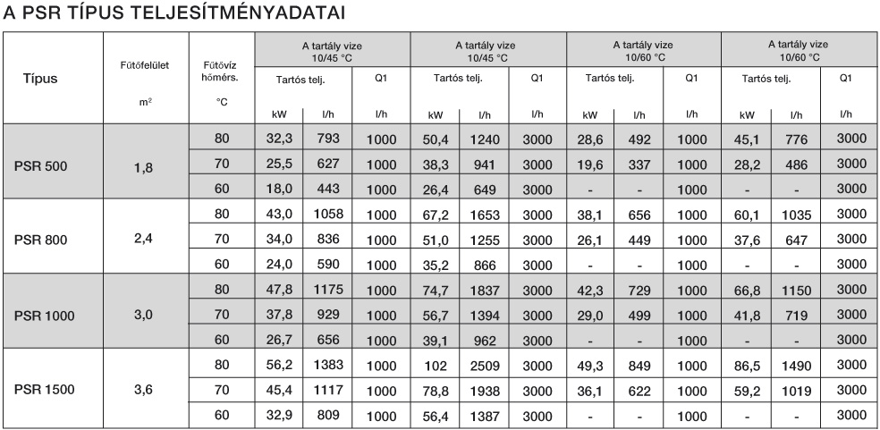 7. Üzemi nyomás: 8 bar, ellenőrző nyomás 12 bar a csőkötegben a PSR és PSRR típusoknál