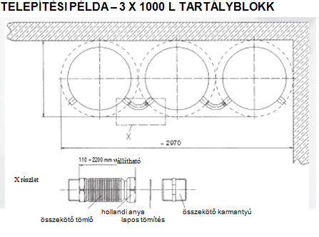 Ha szükséges, akkor több puffertartályt is össze lehet egymással kapcsolni (ld. alább), így a tárolási térfogatot egyedileg lehet hozzáigazítani az igényekhez. A puffertartályokat hűtőfolyamatokhoz (3 bar üzemi, vagy rendszernyomásnál) hidegvíz-tárolásra, vagy ipari berendezésekben hővisszanyerésre is lehet használni (az alkalmas Armaflex-szigetelést azonban a helyszínen kell kialakítani).