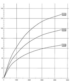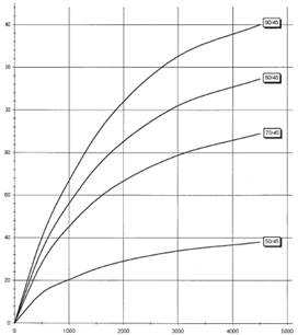 Átfolyási teljesítmények (45 ºC) a DB 03/02-höz, PSR 1500 – 3,6 m2Átfolyási teljesítmény (60 ºC) a DB 03/02-höz, PSR 1500 – 3,6 m2